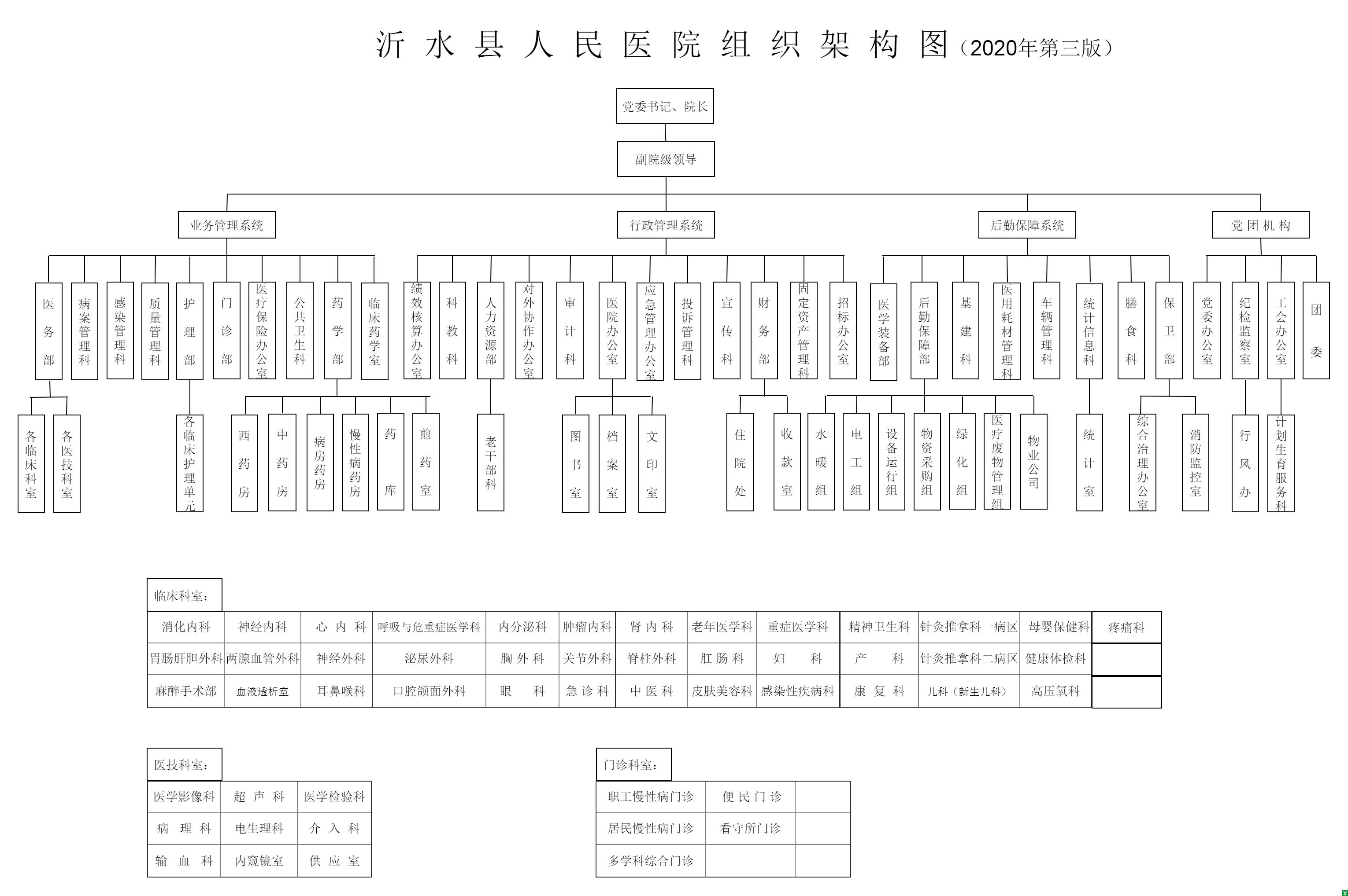 现有临床、医技、行政各科室: