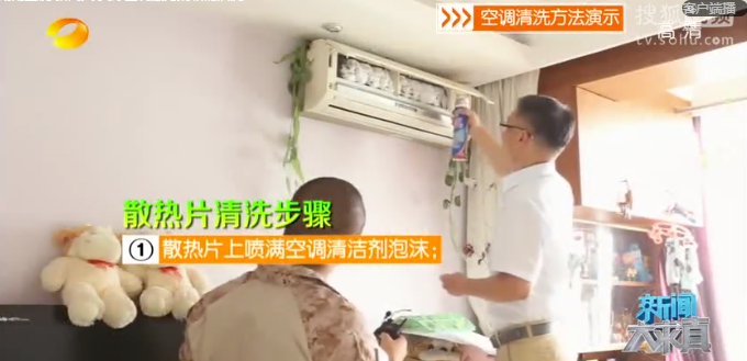 选用具备“国家卫生部消毒产品证号”的空调清洁剂,在散热片上喷满空调清洁剂泡沫,静置15分钟左右,安装过滤网后,按照正常制冷程序运行15~30分钟左右。