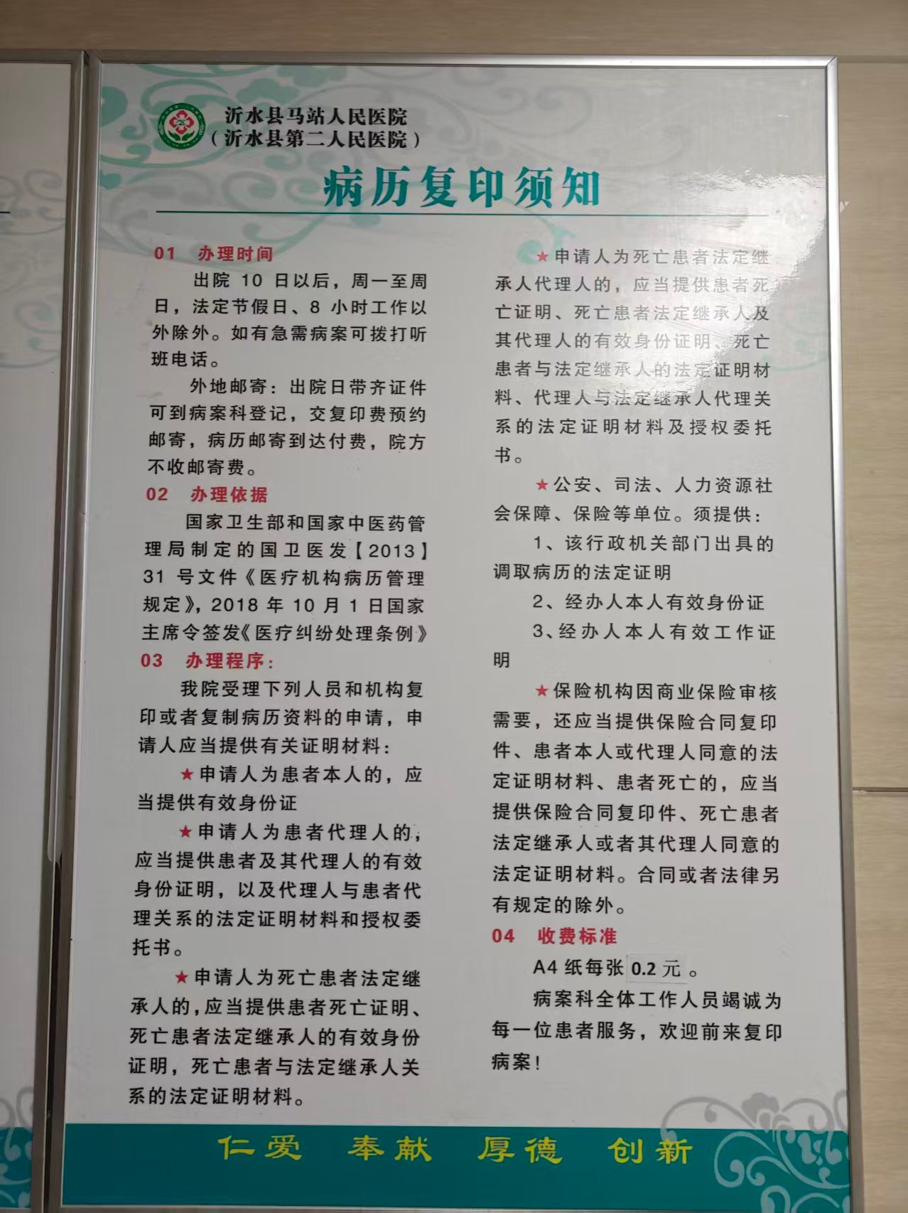 | 标 题: | 沂水县马站人民医院病历复印须知 | ||