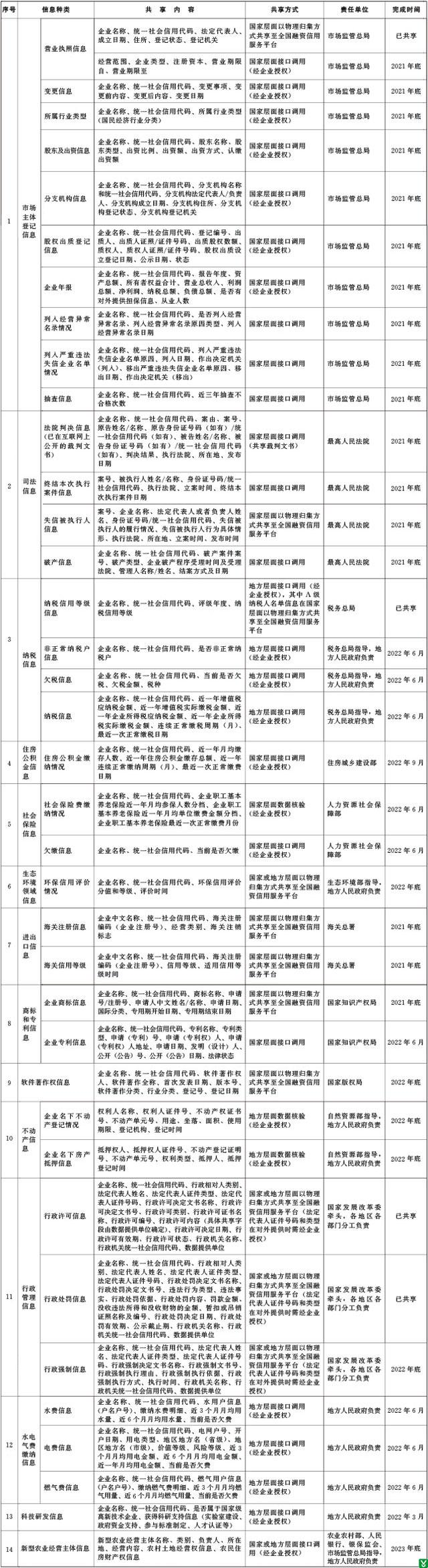 注:1.“中小微企业”是指按照工业和信息化部等有关部门制定的中小企业划型标准确定的中型、小型、微型企业。个体工商户、农民专业合作社、农村集体经济组织的相关信用信息共享工作参照本实施方案执行。