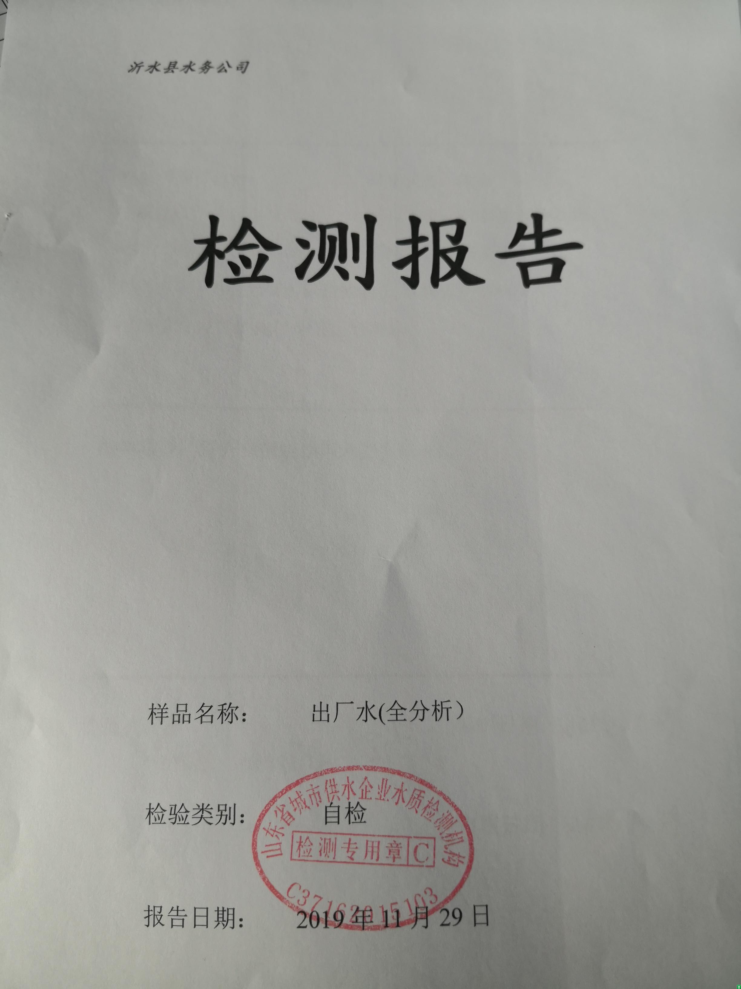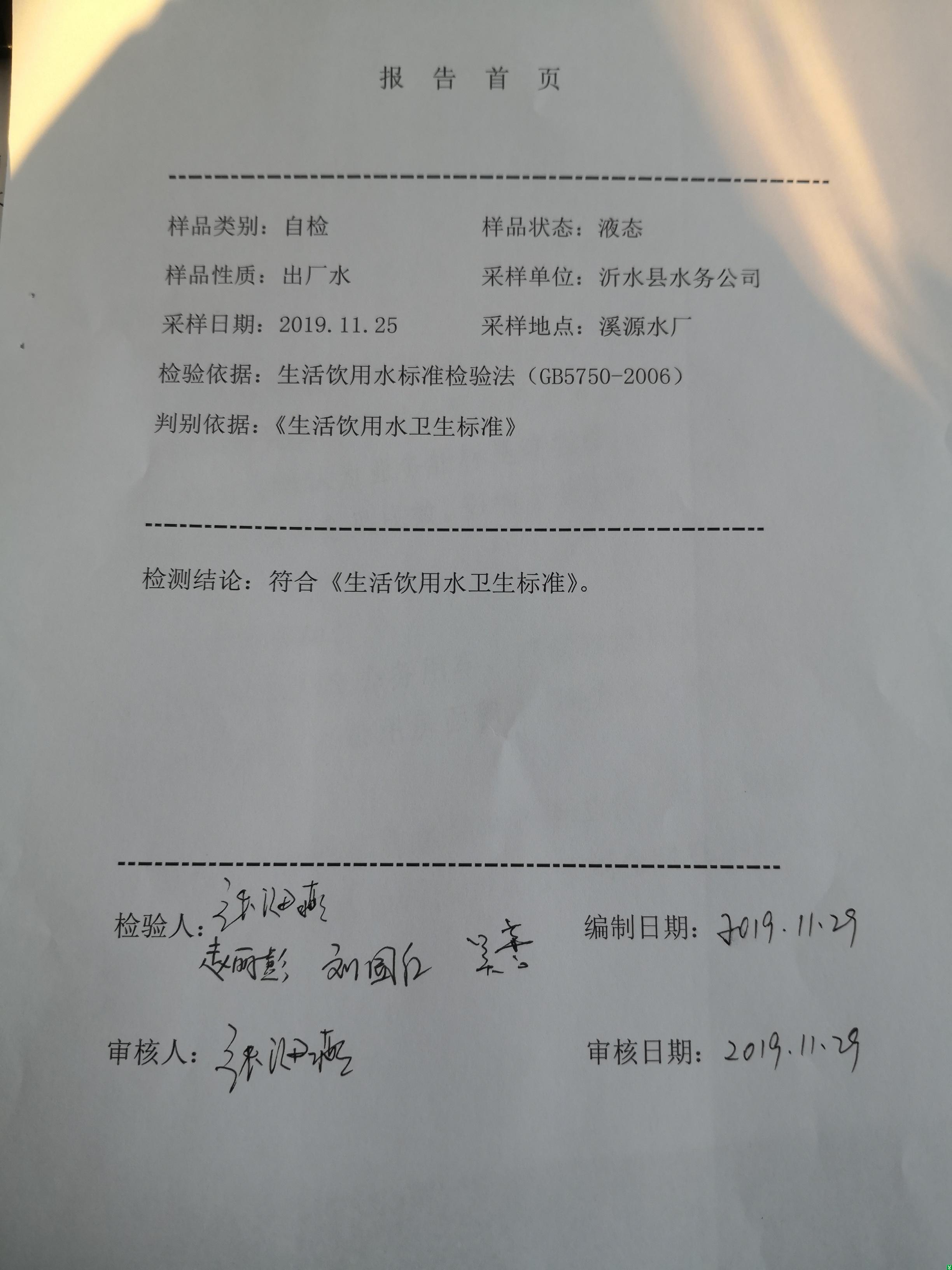 | 标 题: | 2019年11月份溪源水厂水质全分析检验报告 | ||