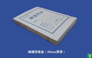 档案装具为20mm和30mm两种规格无酸纸质盒,装文字资料的档案盒背脊厚度为20mm,装竣工图纸的档案盒背脊厚度30mm。卷盒封面需有城建档案要求标识,如下图所示: