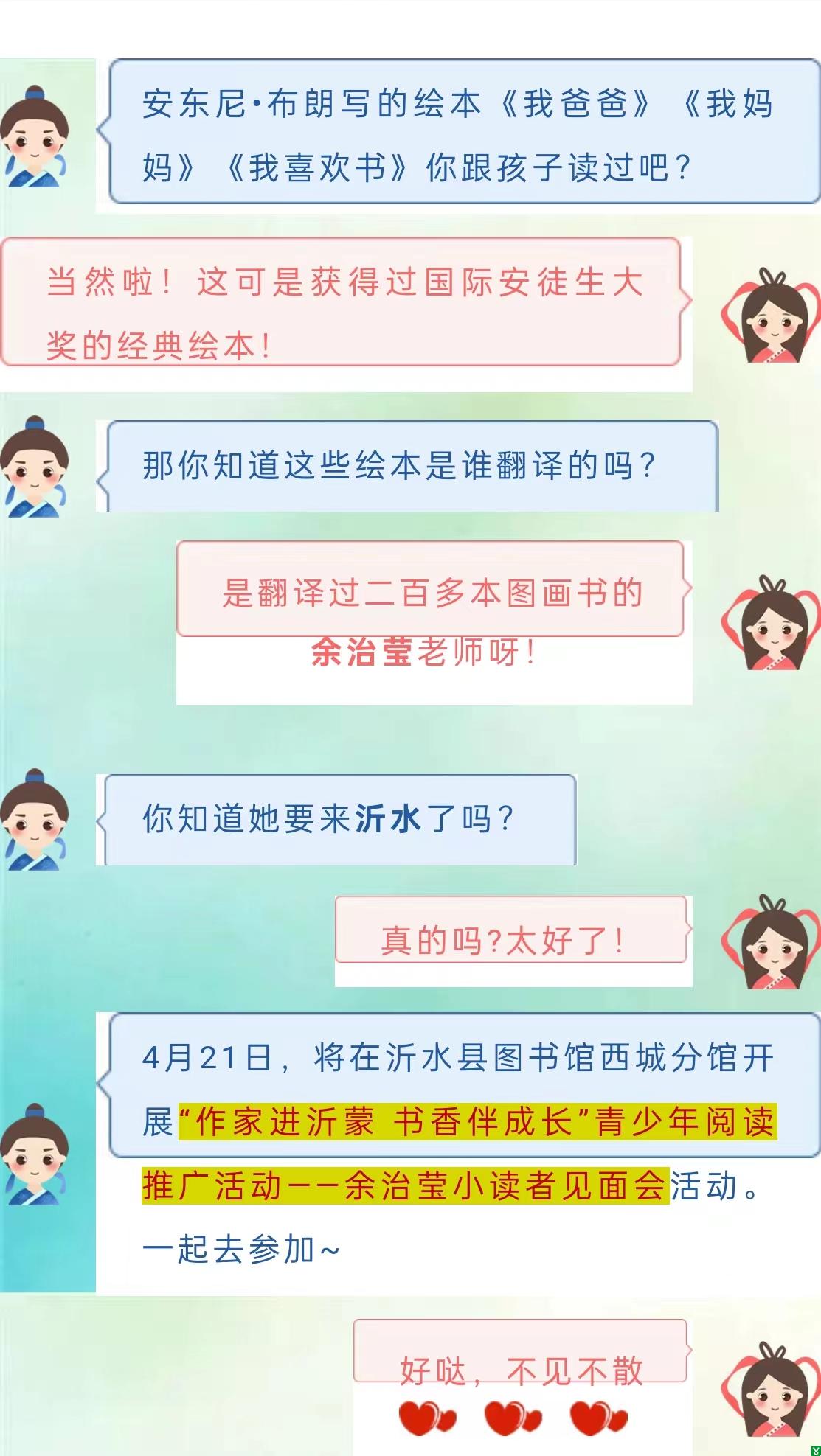 | 标 题: | 【活动通知】“作家进沂蒙 书香伴成长”青少年阅读推广活动——余治莹小读者见面会沂水专场 | ||