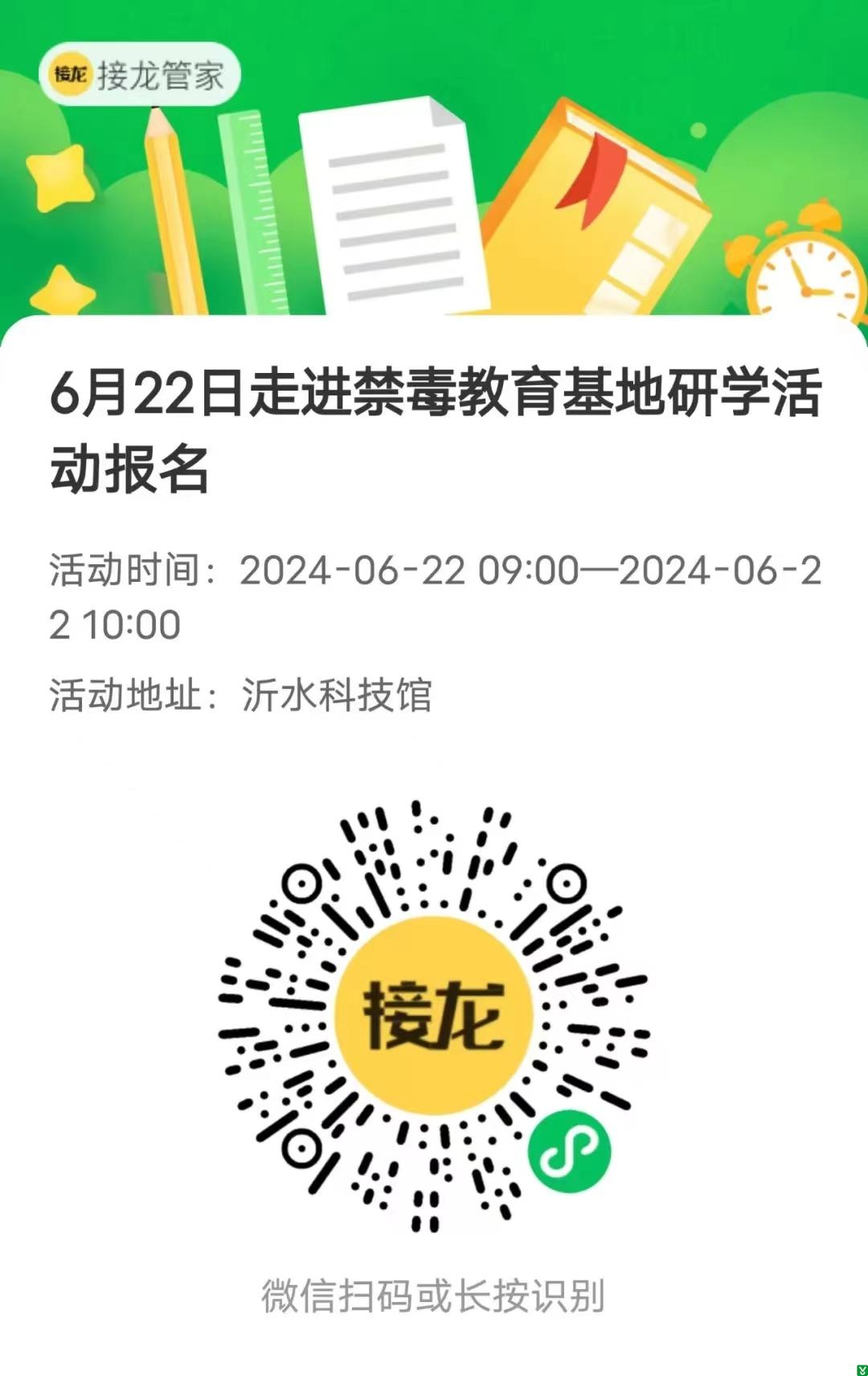 | 标 题: | 【活动报名】“6.26国际禁毒日,护航青春不‘毒’行”走进沂水县禁毒教育基地研学活动预告来了! | ||