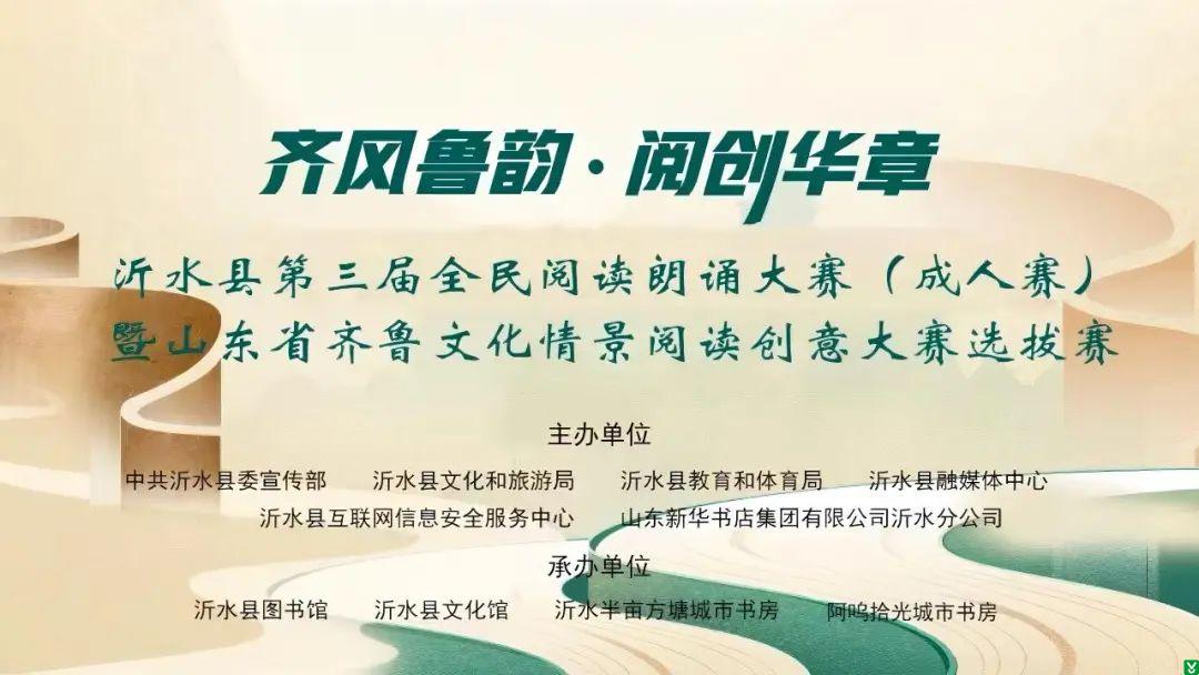 为深入挖掘齐鲁文化内涵,推动齐鲁文化创造性转化、创新性发展,以情景演绎激活典籍智慧,以青春之声赓续文化根脉,携手书写新时代齐鲁华章!经研究决定举办沂水县第三届全民阅读朗诵大赛(成人赛)暨山东省齐鲁文化情景阅读创意大赛临沂市选拔赛。