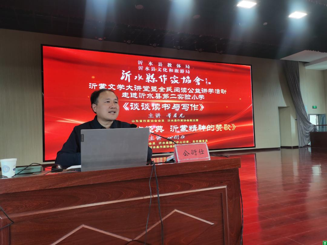 今年以来,沂水县第一、第二实验小学认真贯彻落实全县全民阅读工作精神,开展了主题演讲比赛、经典篇目诵读、最美读书笔记评选、亲子共读比赛等丰富多彩的阅读活动,收到了良好的成效。此次“沂蒙文学大讲堂暨全民阅读公益讲学活动”走进两所实验小学,对于进一步促进两校的阅读活动开展,强化广大师生的阅读意识,将起到非常积极的作用。