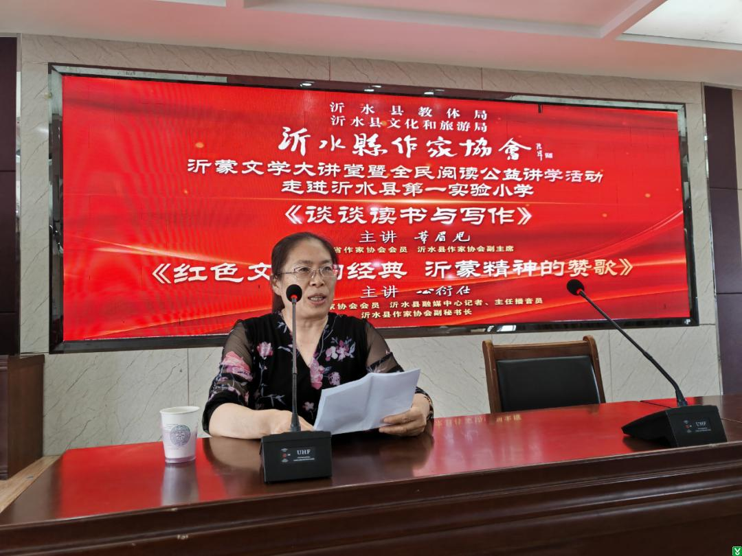 5月28日、29日,由沂水县教体局、沂水县文化和旅游局、沂水县作家协会共同主办的“沂蒙文学大讲堂暨全民阅读公益讲学活动”走进沂水第一、第二实验小学。山东省作家协会会员、沂水县作家协会副主席薛俊美(苇眉儿),山东省作家协会会员、沂水融媒体中心主任播音员、沂水县作家协会副秘书长公衍仕分别为两所学校的近千名学生们讲课。