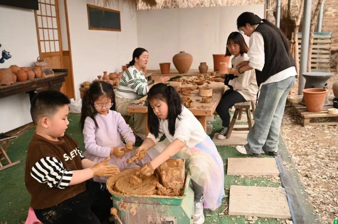 陶艺坊里,大人孩子忙得不亦乐乎,一块块儿柔软的泥巴,经过捏揉搓拉的道道工序,一会儿的功夫就变成了各种器皿和玩具,这既锻炼了孩子们的动手能力,也使传统工艺在小小的心灵里扎根发芽。论起玩儿泥巴,大人们的热情一点也不输孩子,看着自己制作的陶罐,早已在心中有了安排,这一个放在茶桌,那一个可以插一束干花……