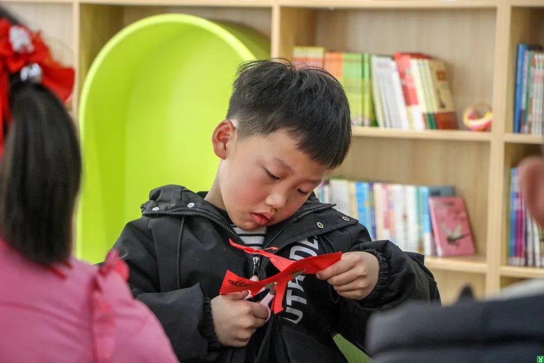 活动中,志愿者老师首先通过《花丫丫学剪纸》绘本让孩子们了解剪纸的历史起源和艺术特色等知识。随后由老师进行指导,孩子们一手拿剪刀,一手拿纸,时而认真思考,时而上下摆动,神情专注,化身剪纸艺术家,努力剪出造型,一张张彩纸在他们手中变成了各种各样的图案,孩子们拿着自己亲手剪出的艺术品成就感满满。