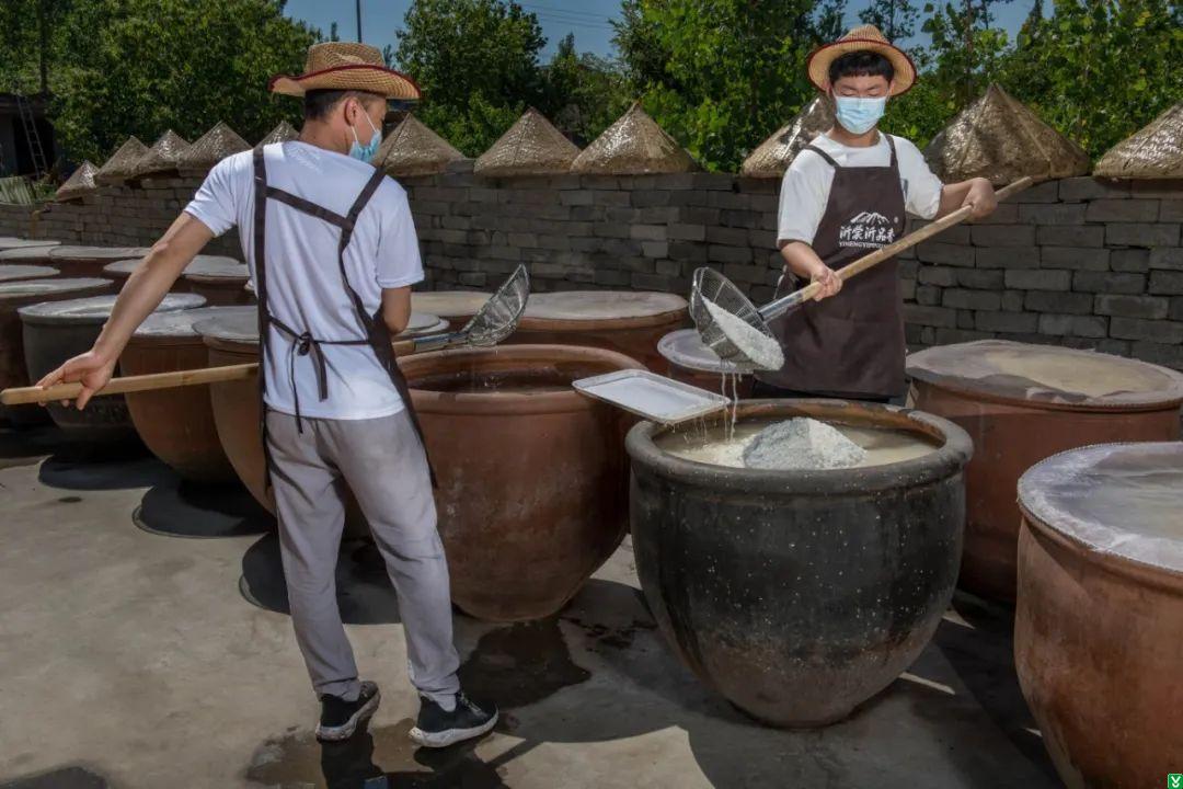 贰 制作工艺 作为省级非物质文化遗产,沂水丰糕对制作工艺有着极高的要求。共分浸泡发酵、择时倒缸、清洗晾晒、磨制成粉、烫面打糊、和面压团、压面切条、油炸膨化、加工成型、切块包装等十道工序,全部为手工制作。自然发酵的方式,让丰糕口味独特,既有着发糕发酵的特点,又具备糕类食品香甜的特点,同时还拥有烹炸食品的酥脆,吃起来却毫无油腻感。