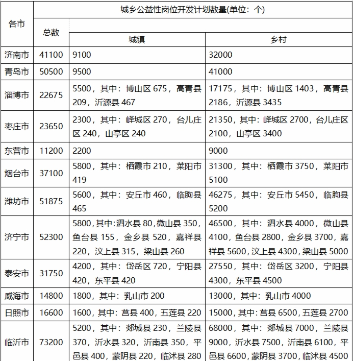 附件:山东省城乡公益性岗位扩容提质行动2023年岗位计划