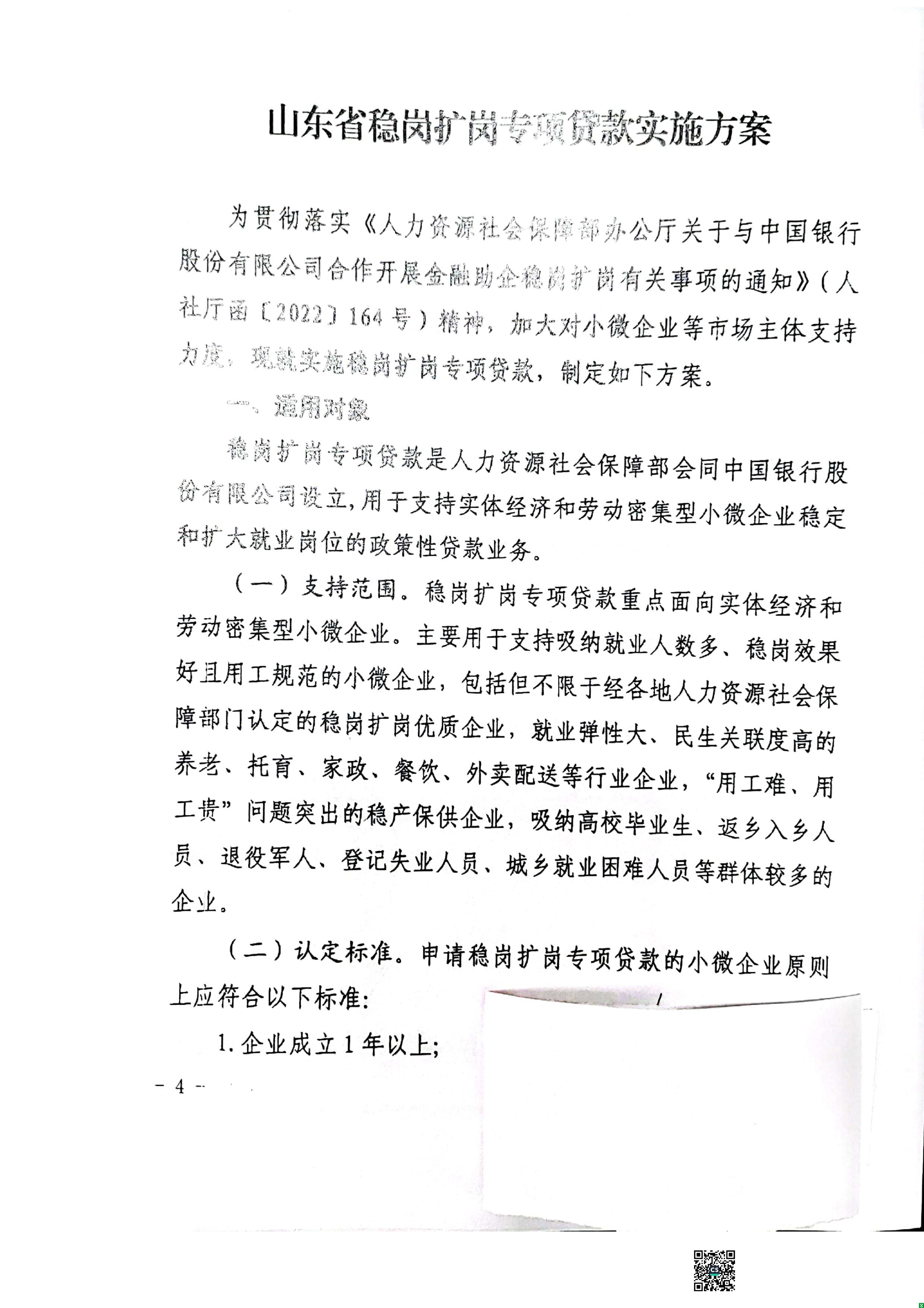 附件:1.《山东省稳岗扩岗专项贷款实施方案》