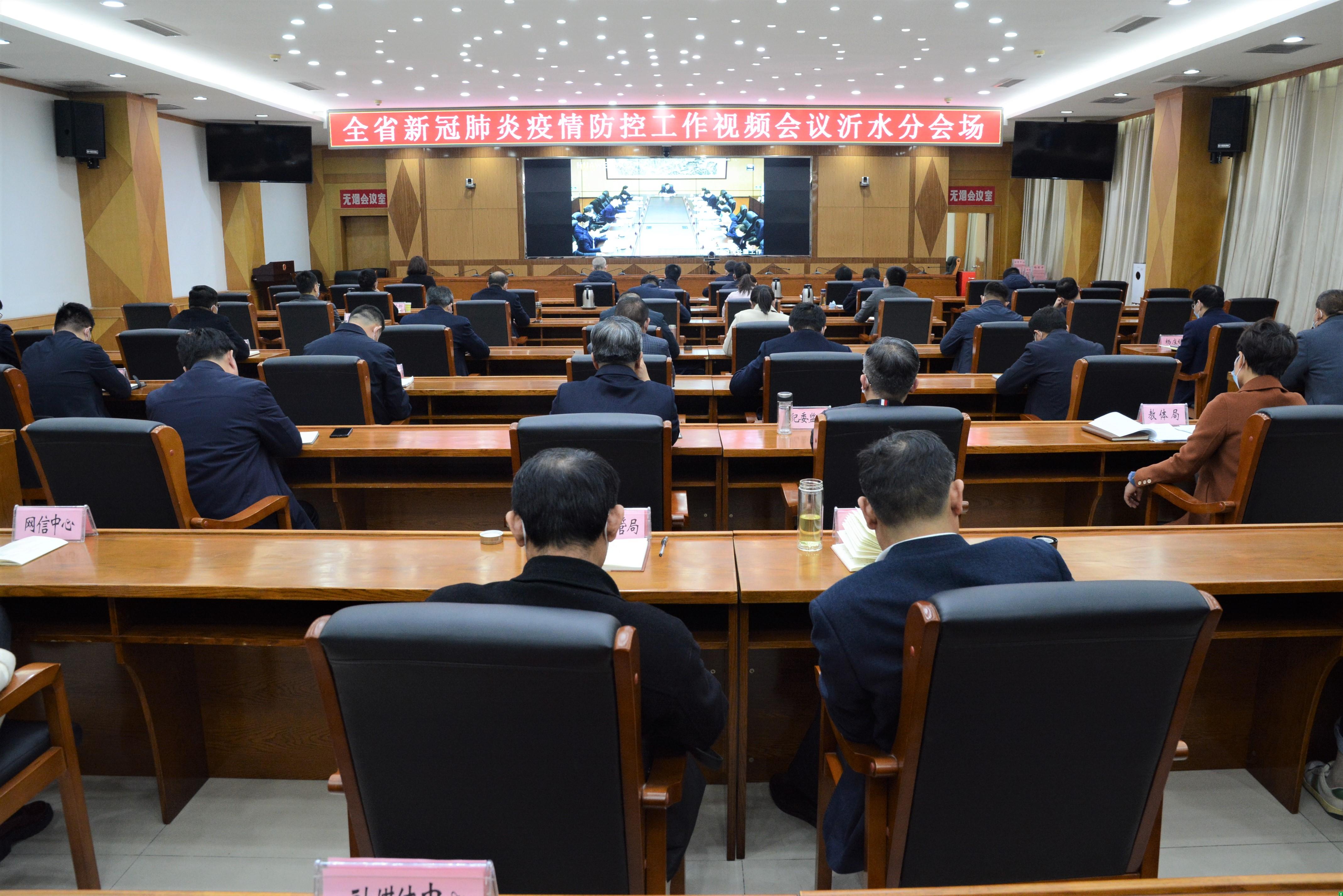 3月1日,全省新冠肺炎疫情防控工作视频会议召开,县委副书记、县长刘铭,副县长王海娟在沂水分会场收听收看。