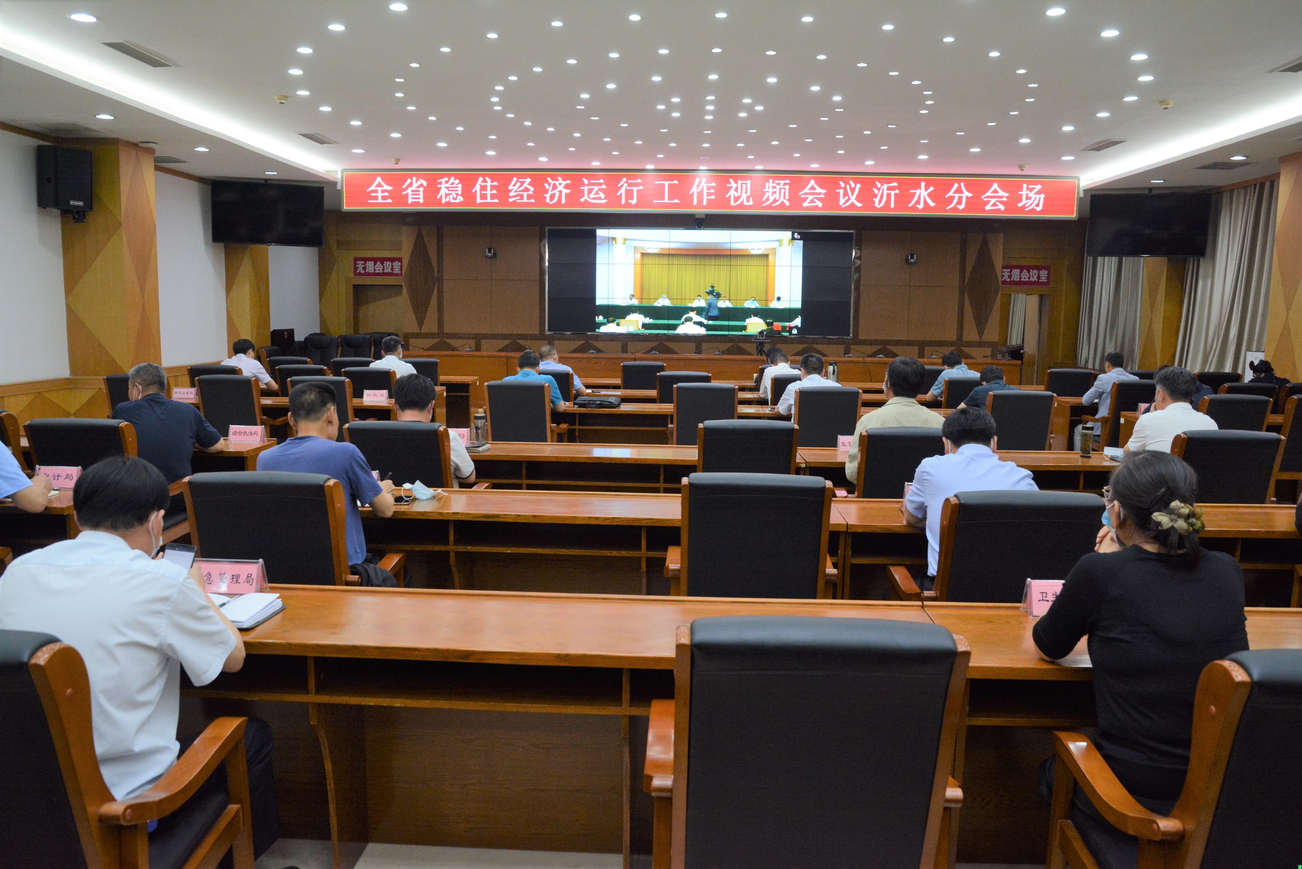 5月25日,全省稳定经济运行工作视频会议召开,副县长王海娟等在沂水分会场收听收看。
