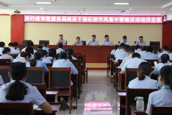 9月12日上午,县行政审批服务局召开党员干部纪律作风集中整顿活动动员会议,部署安排政务服务中心党员干部纪律作风集中整顿工作。县纪委常委、督导五组组长刘洪全,县纪委监委派驻三组组长庞在良到会指导,驻中心各窗口首席和局全体党员干部职工参加会议。