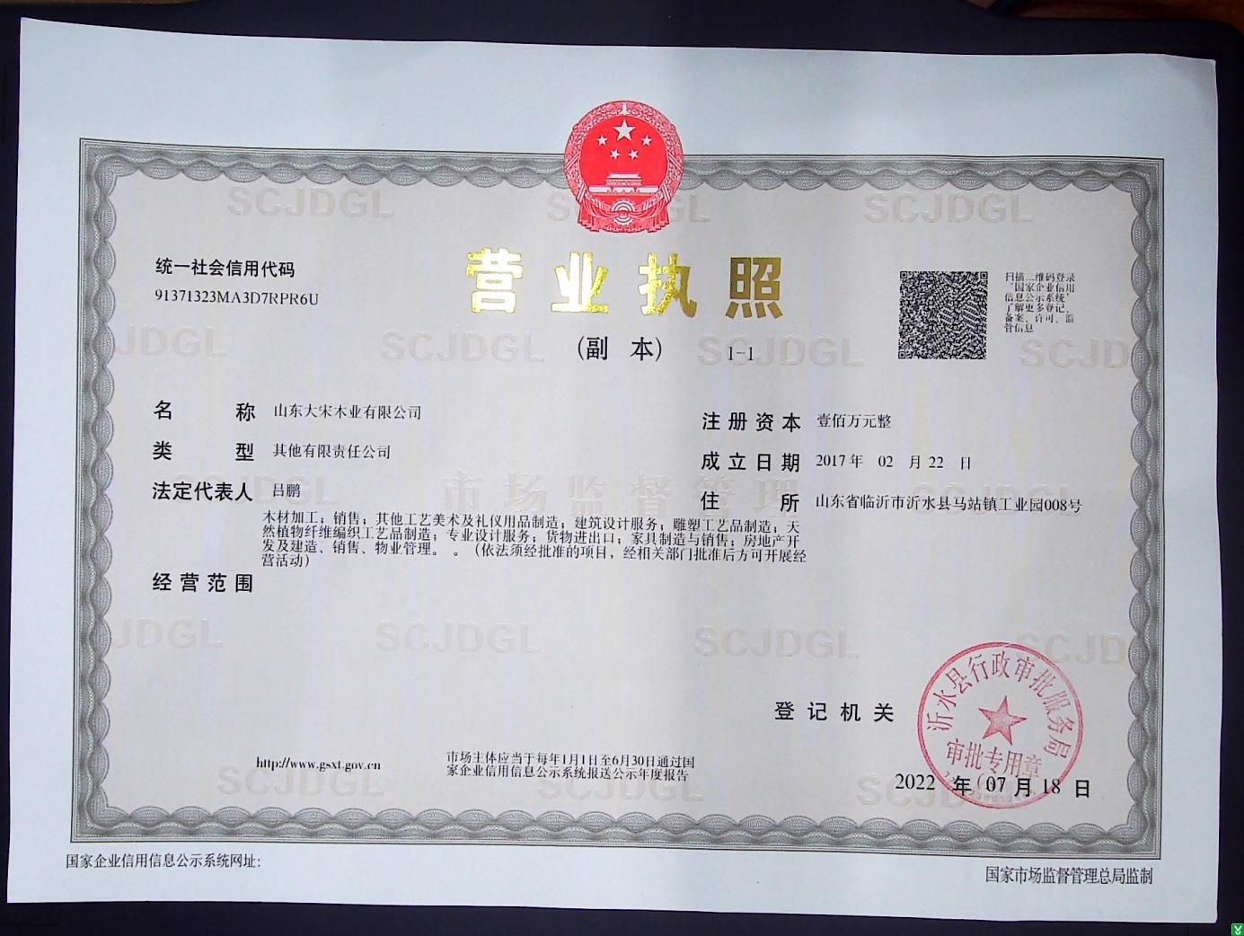 声明人: 山东大宋木业有限公司