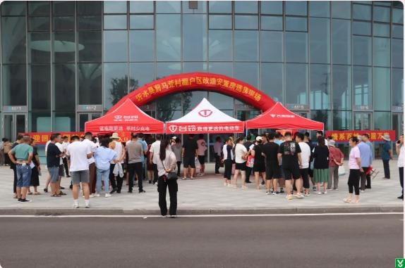 选房现场,人头攒动,气氛热烈,秩序井然,安置群众整齐排队,依次等待选房,喜悦心情溢于言表。