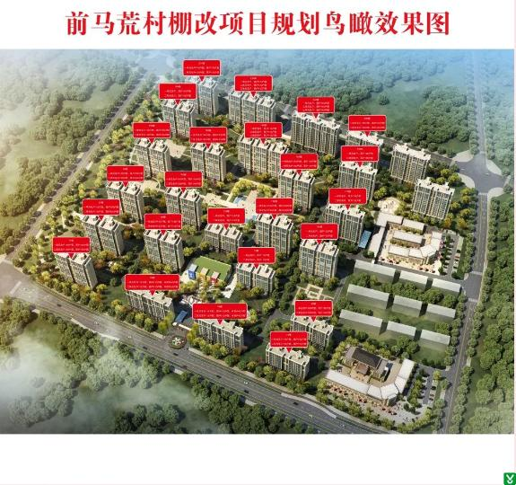 龙家圈街道前马荒安置区位于双马路以南,西城一路以西,西城二路以东,总占地面积211.8亩。共规划建设住宅楼24栋1658套,其中45㎡52套、110㎡634套、130㎡588套、140㎡384套,以及社区服务设施一栋、商业综合体一处、幼儿园一栋和休闲娱乐等配套设施。