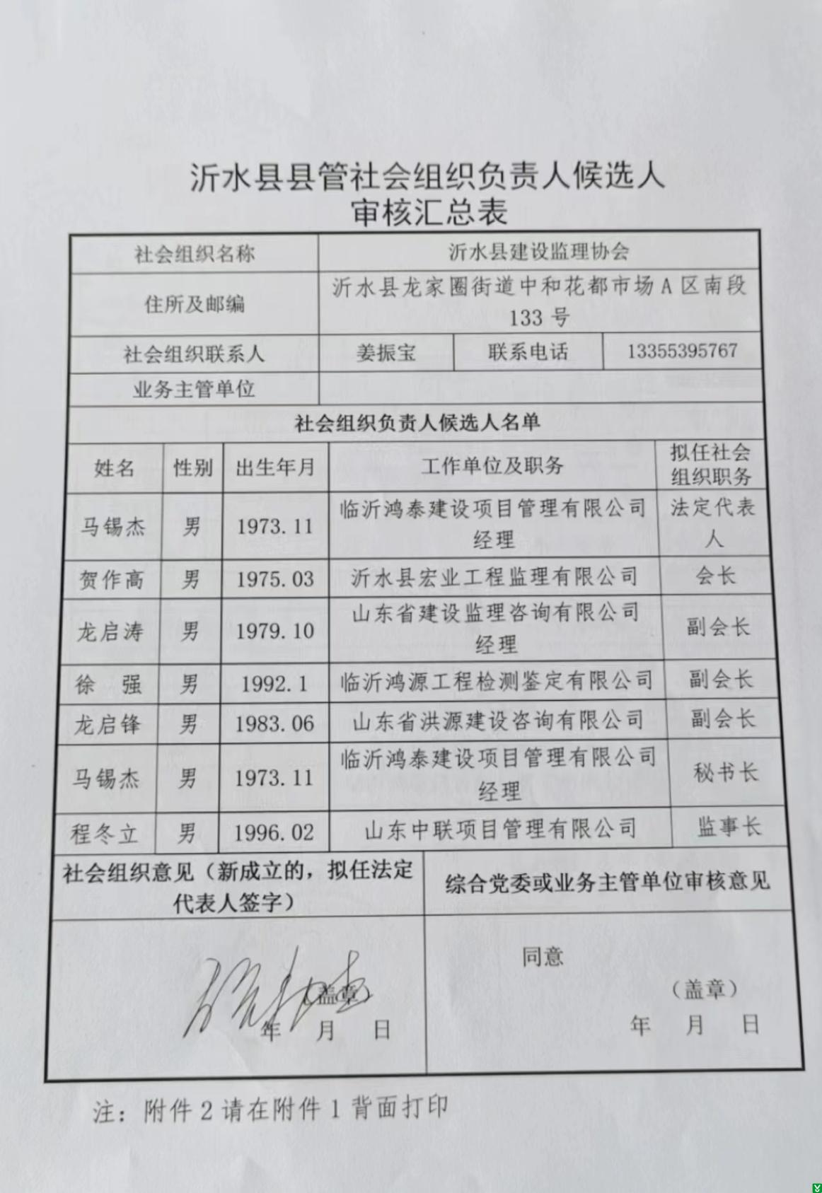 根据《沂水县社会组织负责人人选审核办法(试行)》规定,现对沂水县建设监理协会负责人人选公示如下:
