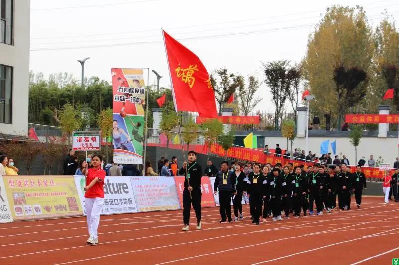 “新时代新诸葛,文化甘霖如花纷扬,万亩林果四季飘香,飞地经济异彩绽放。诸葛的运动健儿,将用他们拼搏的汗水挥洒赛场、用厚道的友谊书写地久天长~”伴着响亮的口号,诸葛镇代表队31名运动健儿阔步走过主席台,参加田径、球类三个大类16个比赛项目。