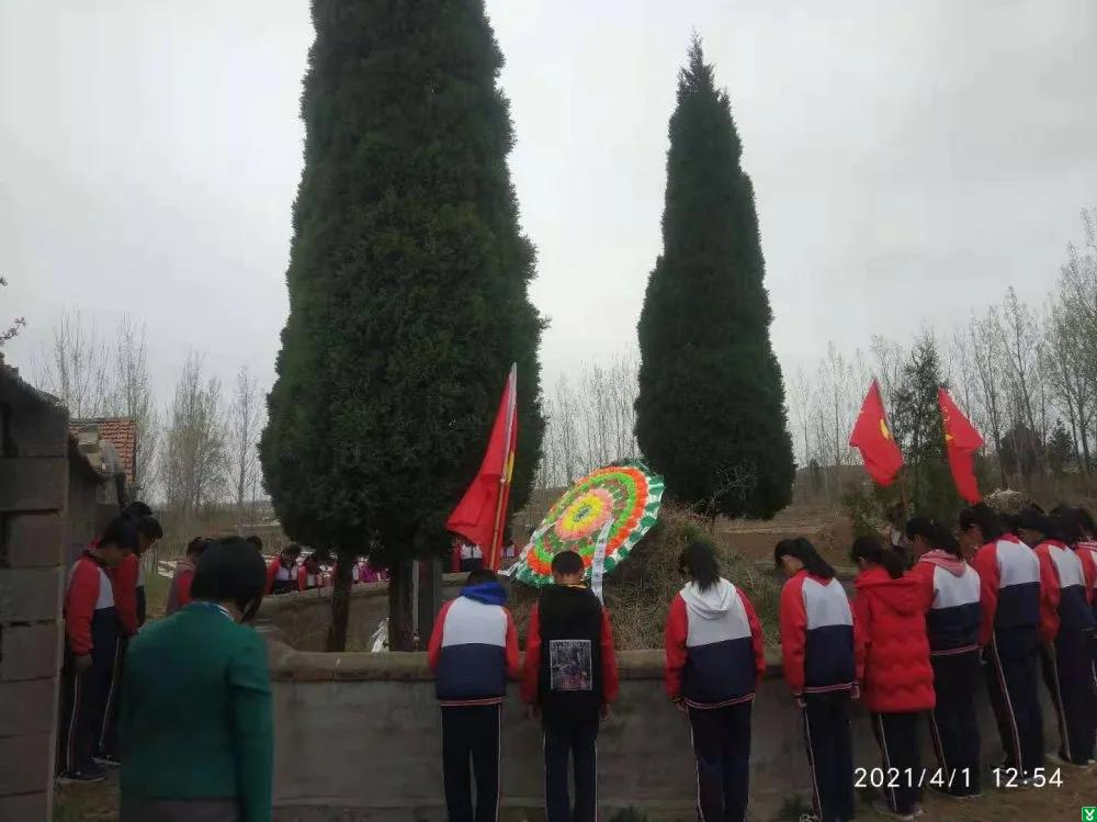 正阳小学的队员们在校长和大队辅导员的带领下,到龙泉站村的烈士墓,向革命烈士敬献花圈并默哀。