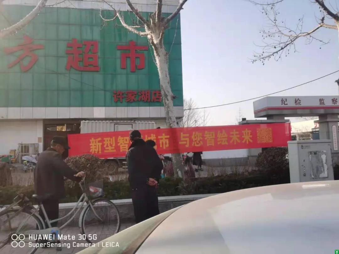 首先,通过LED屏幕、宣传条幅、现场宣讲等多种线下方式营造专项活动的良好氛围。党政办公室通过在镇政府门口LED屏上持续播放新型智慧城市宣传材料,在全镇2个大型超市、十里铺集市、汽车站、宏鑫商城等人员聚集处悬挂宣传条幅,让更多群众了解新型智慧城市建设。