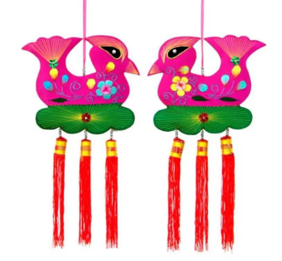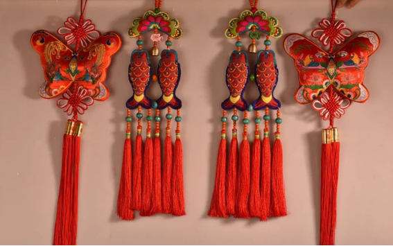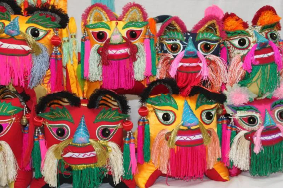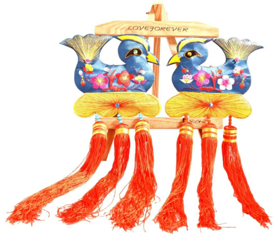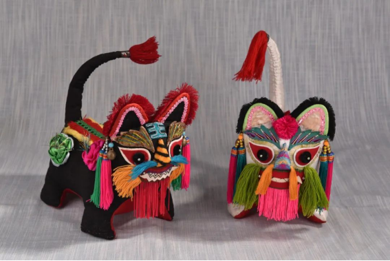 高桥手绣融刺绣的平面装饰性与布艺雕塑的三维立体感于一体,造型古拙朴厚,简洁大方,线条流畅,略显夸张,有秦汉艺术之风;将多种装饰技法与造型元素相融合,精雕细琢,形象生动;色彩搭配纯度较高,强调装饰效果,对比强烈却艳而不俗,喜庆色彩浓厚,题材多样,寓意性强。