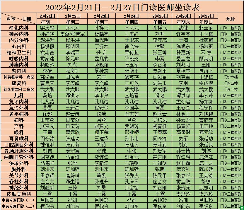 | 标 题: | 沂水县人民医院门诊医师坐诊排班2月21日-27日 | ||