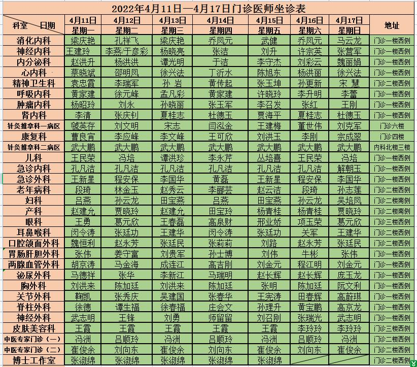 请以当日出诊信息为准,敬请谅解。