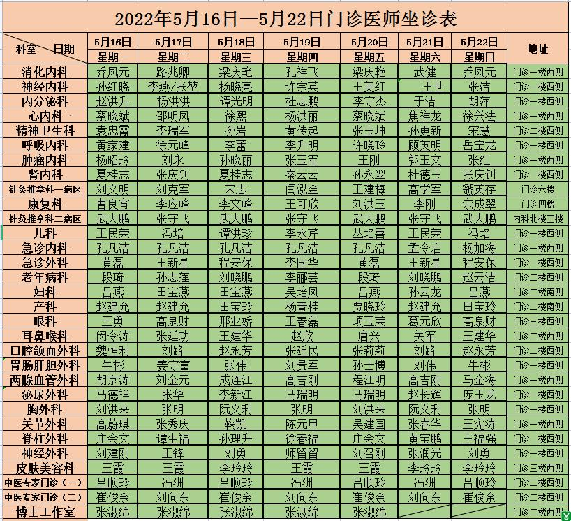 | 标 题: | 沂水县人民医院门诊医师坐诊排班5月16日-22日 | ||