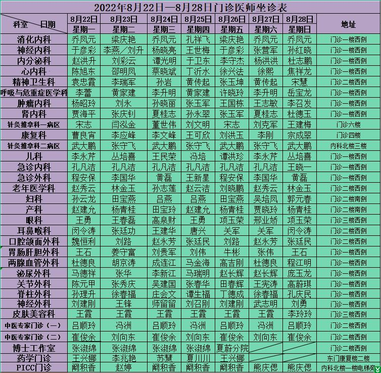 | 标 题: | 沂水县人民医院门诊医师坐诊排班8月22日-28日 | ||