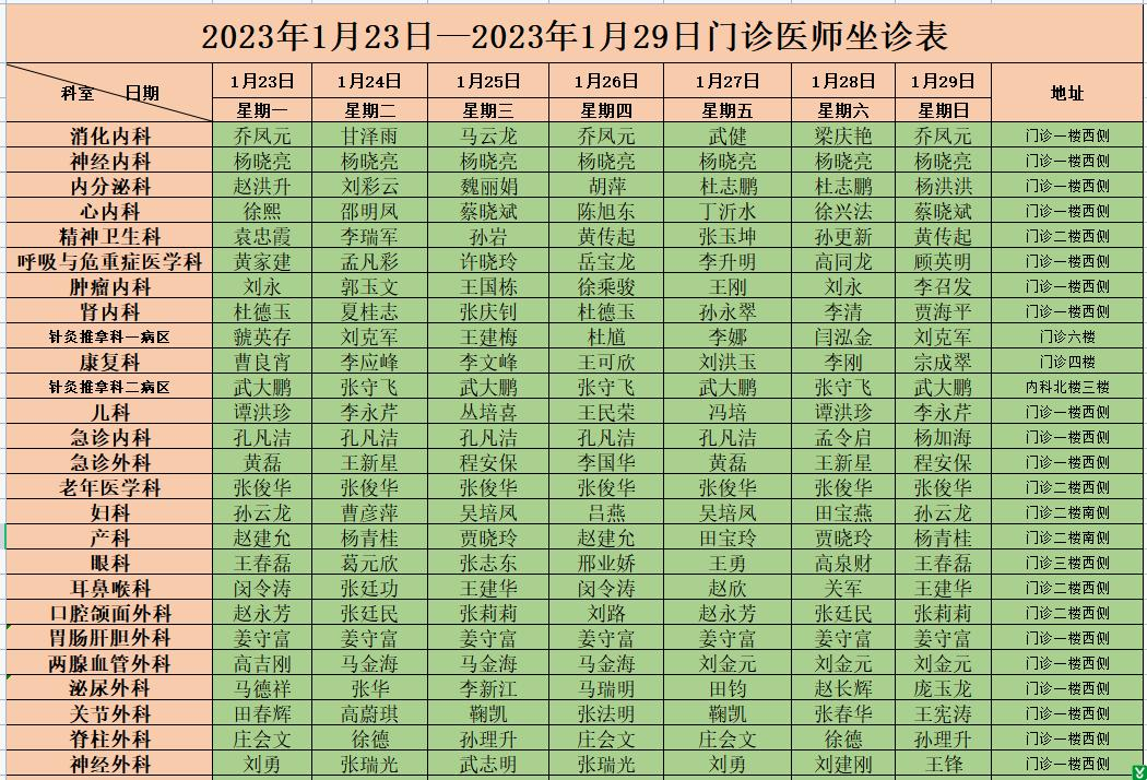 | 标 题: | 沂水县人民医院门诊医师坐诊排班(1月23日-29日) | ||