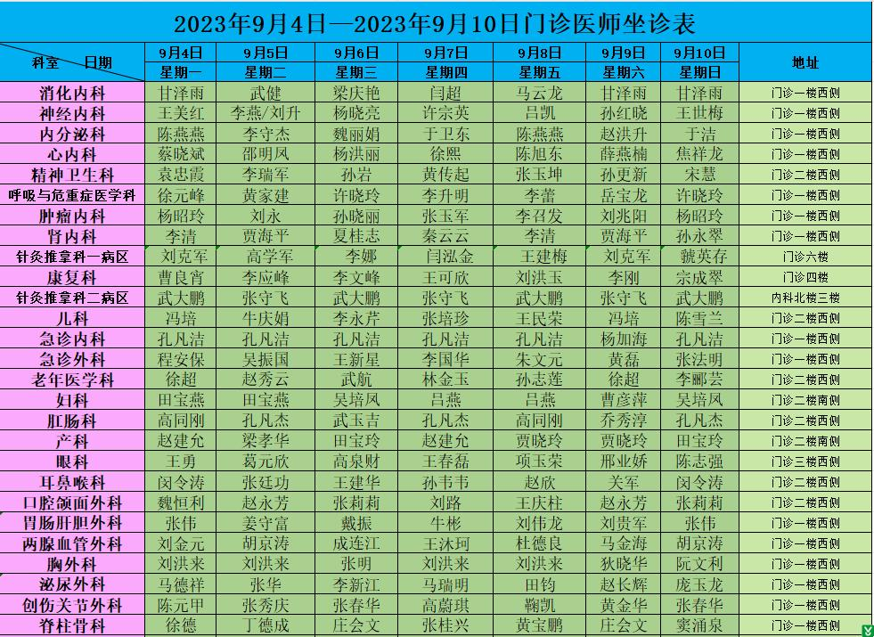 | 标 题: | 沂水县人民医院门诊医师坐诊排班(9月4日-10日) | ||