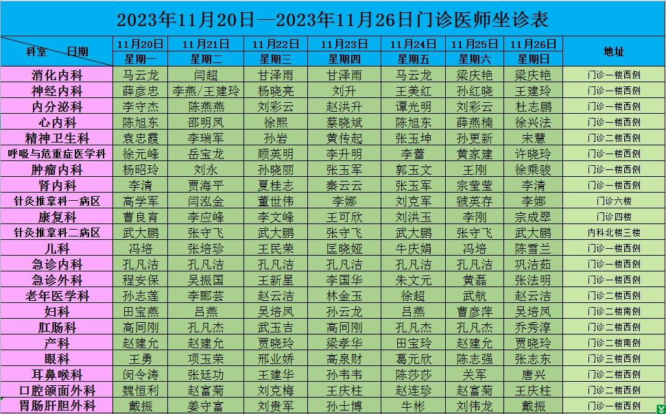 | 标 题: | 沂水县人民医院门诊医师坐诊排班(11月20日-26日) | ||