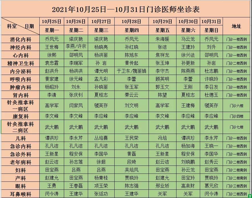 以下排班如有临时调整,请以当日出诊信息为准,敬请谅解。