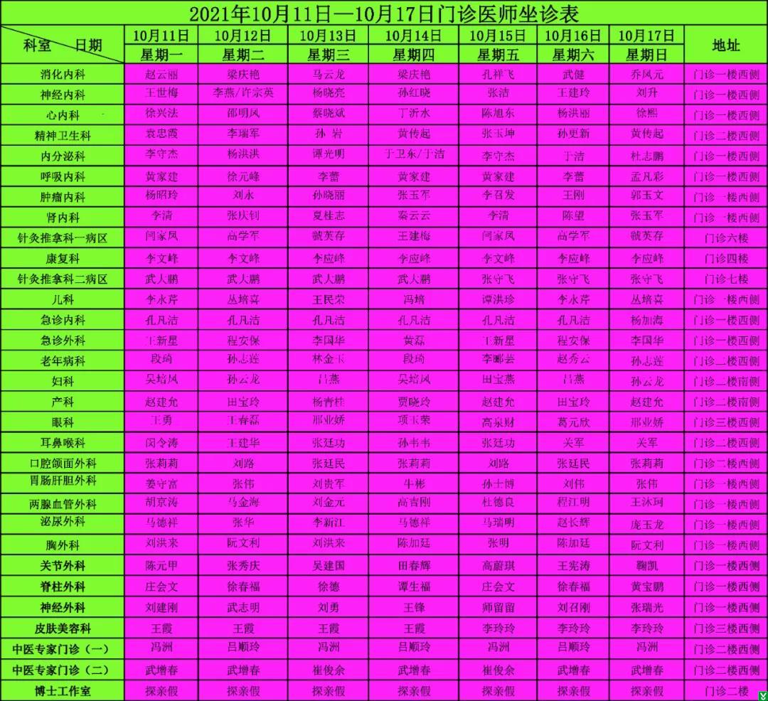 以下排班如有临时调整,请以当日出诊信息为准,敬请谅解。