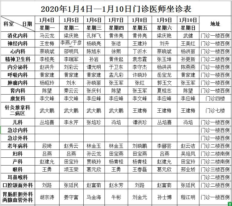 | 标 题: | 沂水县人民医院门诊医师坐诊排班 | ||