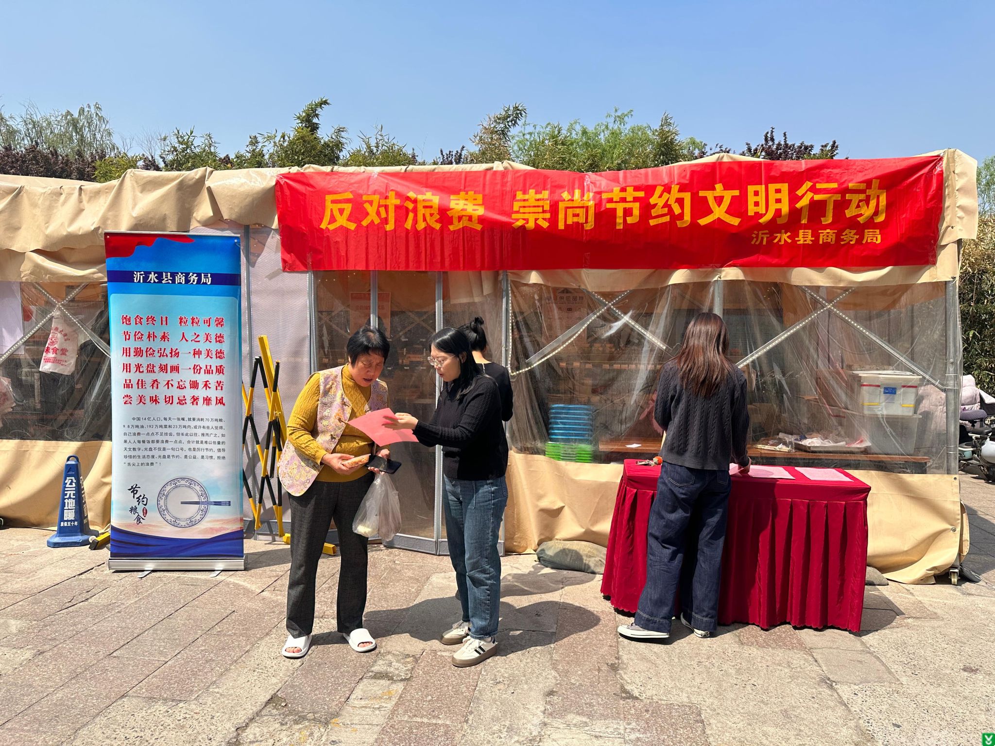 4月17日,县商务局组织职工走进金仕顿大酒店,扎实开展“反对浪费 崇尚节约”主题宣传活动,推动节约理念深入人心。活动现场,工作人员通过悬挂主题横幅、发放倡议书等多种有效形式,广泛普及节约粮食的重要意义。此次共发放倡议书100余份,重点向餐饮从业者和消费者解读反食品浪费相关政策要求,倡导从源头上减少浪费。此次活动紧扣“厉行节约、反对餐饮浪费”主题,有效引导了广大消费者积极参与“光盘行动”,切实营造文明健康的餐饮消费氛围。