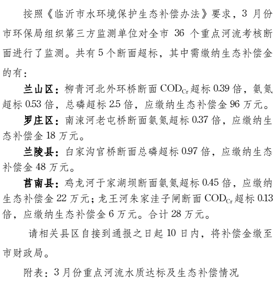 | 标 题: | 2018年3月份水质及生态补偿通报 | ||