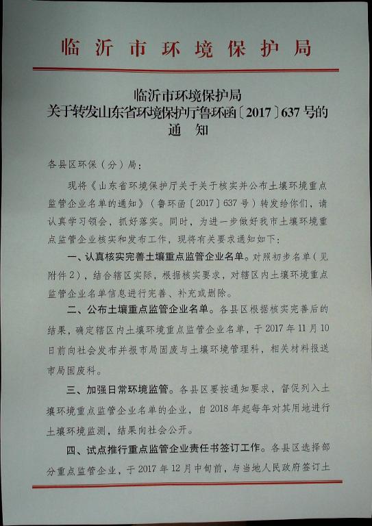 | 标 题: | 关于核实并公布土壤环境重点监管企业名单的通知鲁环函【2017】637号的通知 | ||