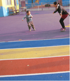 户外还有戏水池、种植角、30米跑道、攀爬墙、小秋千、钻网等。1100多平方米的活动场地,配有高档大型玩具。在玩教具的投放方面,除了添置了户外大型玩具、幼儿操作性玩具、桌面玩具、结构玩具等等,我园还发动教师、家长和幼儿自制玩教具如轮胎车、小推车等,为幼儿提供了一个动手、动脑的机会,同时发展幼儿的创造力和想象力。