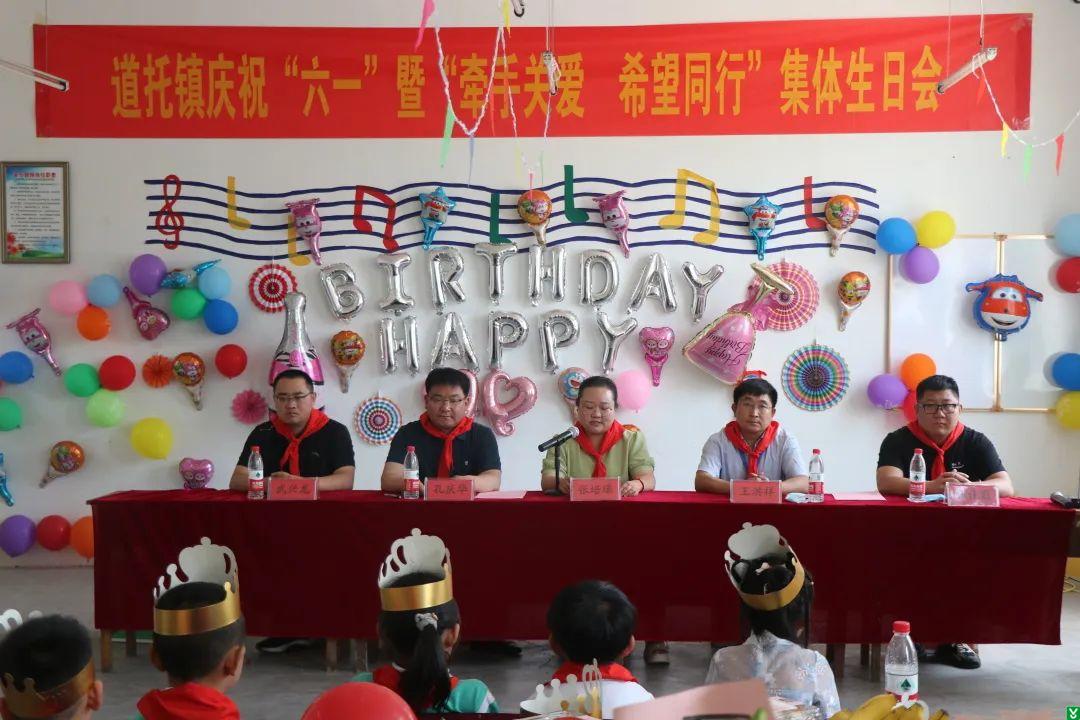 在“六一”国际儿童节到来之际,为关爱儿童群体健康成长,落实“强县有我 青年先行”战略行动安排,道托镇团委联合王家庄小学举办了庆祝“六一”暨“牵手关爱 相伴成长”集体生日会。该校六月份过生日的26名学生和道托镇志愿者共同参加活动。