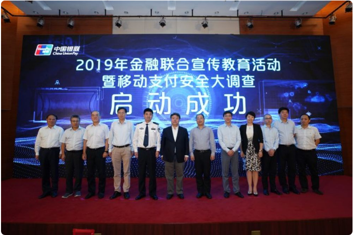 9月11日,中国银联在中国人民银行金融消费权益保护局、国务院打击治理电信网络新型违法犯罪工作部际联席会议办公室和公安部刑事侦查局的共同指导下,联合17家全国性商业银行、18家支付机构举办2019年“金融联合宣传教育活动暨移动支付安全大调查启动仪式”。