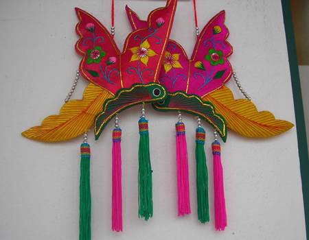 高桥手绣,最早源于沂水县高桥镇沭水南岭,距今已有260余年的历史,其造型古朴浑厚,简洁大方,颜色上强调民间装饰效果,色彩鲜艳,对比强烈,喜庆色彩浓厚,具有典型的乡土文化气息,它把刺绣的平面装饰性与雕塑的三维立体感完美结合起来,以精妙的绣工、活泼的针法及丰富的形象著称,被省文化厅评为省级非物质文化遗产,高桥镇也因此被国家文化部授予“中国民间文化艺术之乡”的称号。