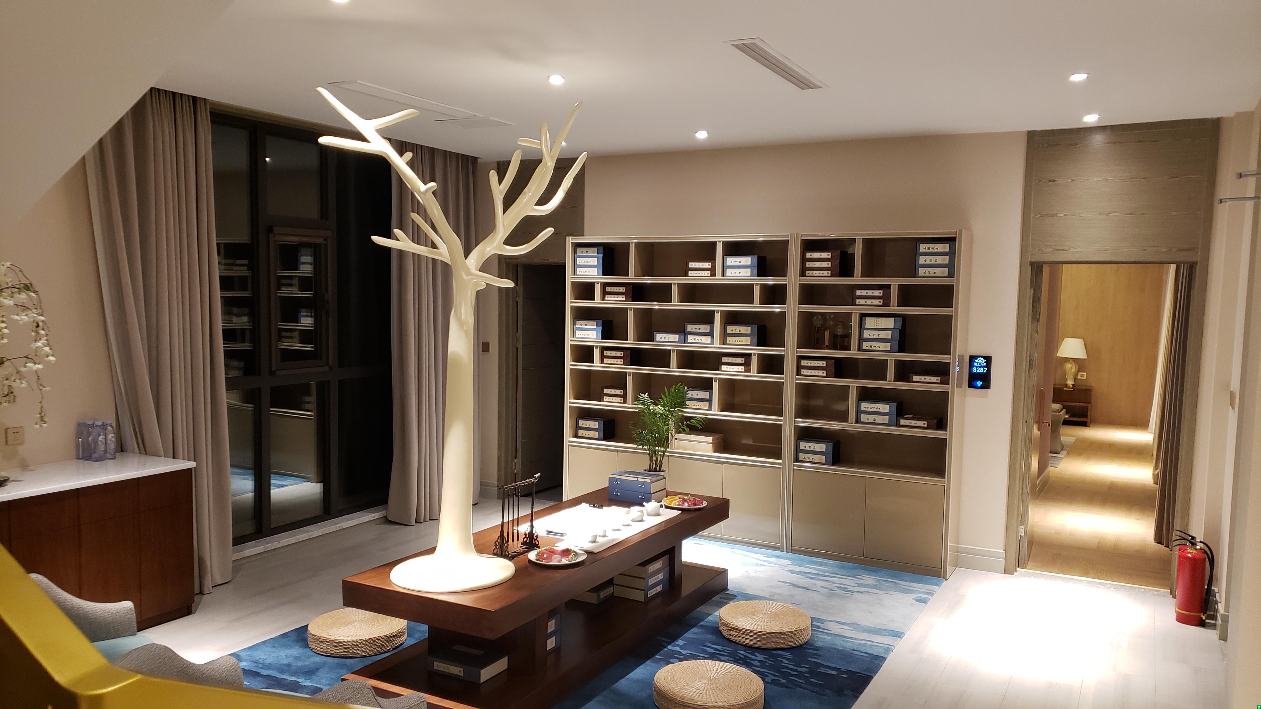 雲水间客房设计以舒适为主,采用大面积的浅色布局,家具款式呼应空间的简洁,墙体也不是单调的白墙,采用环保的硅藻泥,加入金丝、稻草屑,还有闪光的矿石,打造一种宣纸的质感。还有独立艺术家定制画作的空间背景墙,与环境相得益彰的自然植物,展现东方美学。