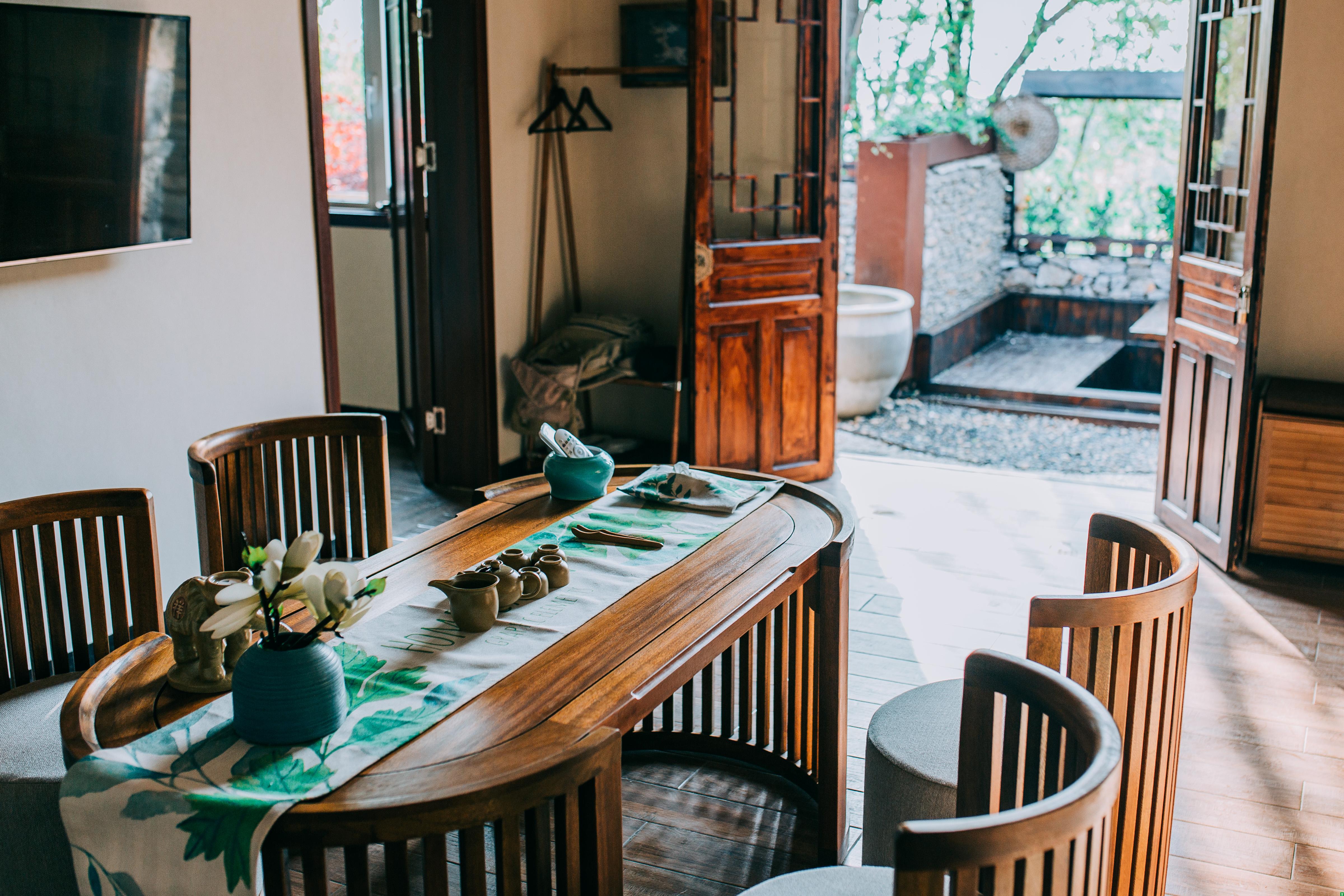 有的院落以田园风为主打,院子清新、绿意盎然,走在院子的小路上,心情便豁然开朗;有的院落建有一座池塘、一张茶艺桌,看游来游去的鱼儿,品一杯茶,淡泊、雅致的生活开始了;有的院落以艺术品为主,精致而富有人文精神;还有几个院落是玻璃阳光房,温暖、明亮,并且自带泳池;不管是哪一种特点的院落,总是会让你回归自我,唤起内心深处乡愁的记忆。