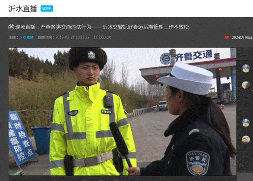交通执法“大直播”活动现场直播:严查各类交通违法行为——沂水交警抓好春运后期管理工作不放松