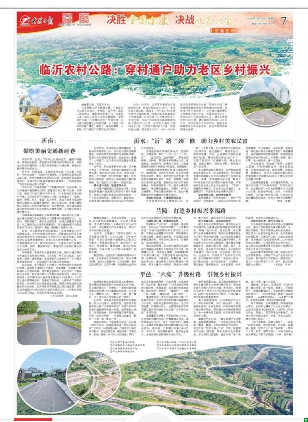 近年来,沂水县紧紧抓住农村公路“三年集中攻坚”专项行动、农村通户道路硬化工程等历史性机遇,通过农村公路+旅游、农村公路+扶贫,大力推进“四好农村路”建设,补齐农村公路短板,铺筑出一条条通往小康的幸福之路,有力推动了乡村振兴、脱贫攻坚和全域旅游的发展。