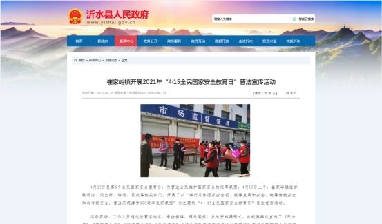 一是信息上网,扩大公开范围。通过县政府门户网站、“沂水县崔家峪镇”公众号,全面普及涉及农村群众的法律法规,并及时发布公共法律服务政务公开信息,让社会公众更多受益于法律服务。