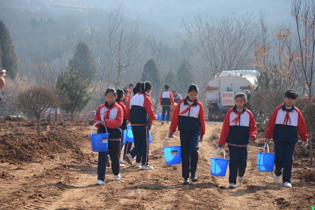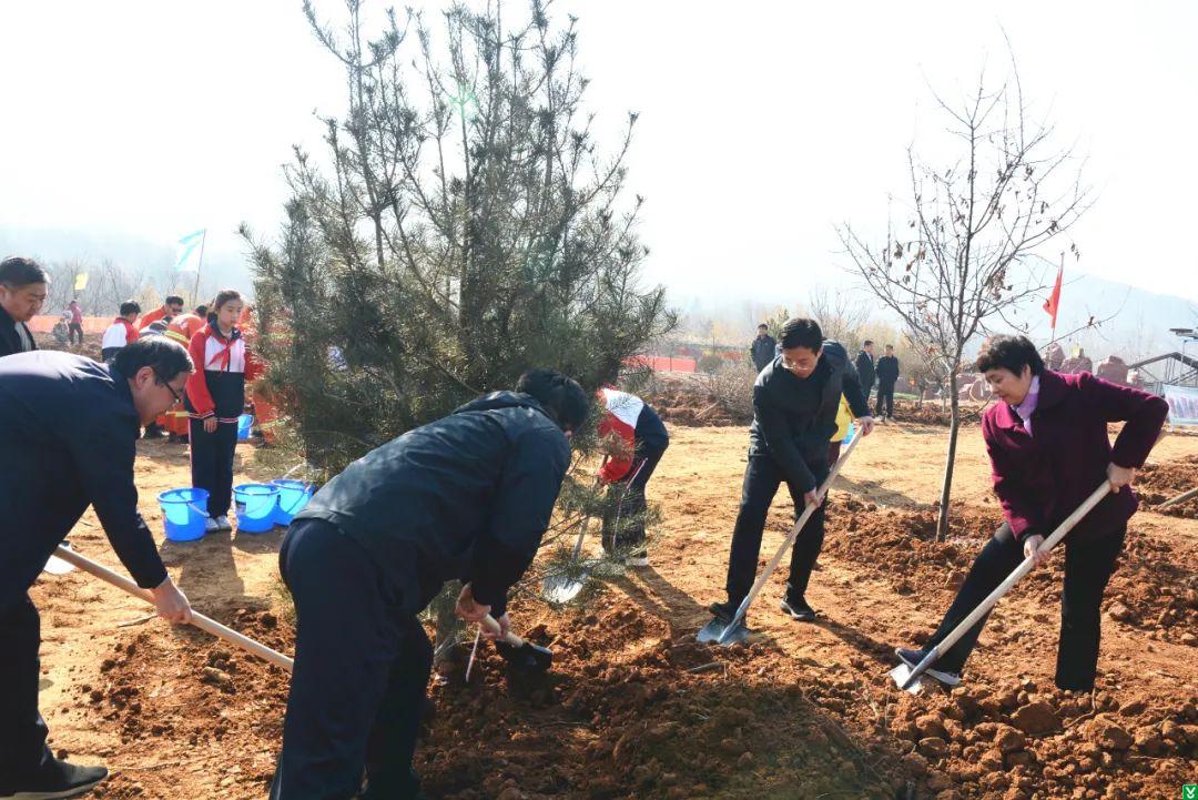 在义务植树现场,大家热情高涨,干劲十足,挥锹铲土、培实新土、提桶浇水,每道工序一丝不苟、认真细致。在辛勤劳动下,一株株白皮松、紫荆、高杆黄杨、海棠、黄栌等3000株新植树木被栽进沃土、迎风挺立,孕育着勃勃生机,焕发出绿色希望。